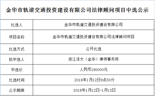 金華市金義東軌道交通有限公司運(yùn)營2026-2027年度活動(dòng)實(shí)施服務(wù)機(jī)構(gòu)框架協(xié)議項(xiàng)目中標(biāo)候選人公示