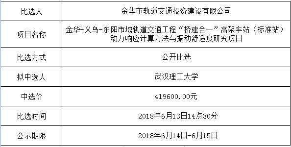 金華市金義東軌道交通有限公司運營2026-2027年度活動實施服務(wù)機構(gòu)框架協(xié)議項目中標(biāo)候選人公示