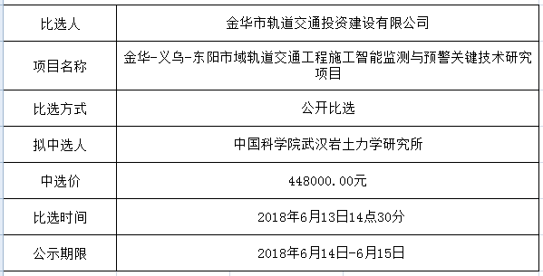 金華市金義東軌道交通有限公司運營2026-2027年度活動實施服務(wù)機構(gòu)框架協(xié)議項目中標候選人公示