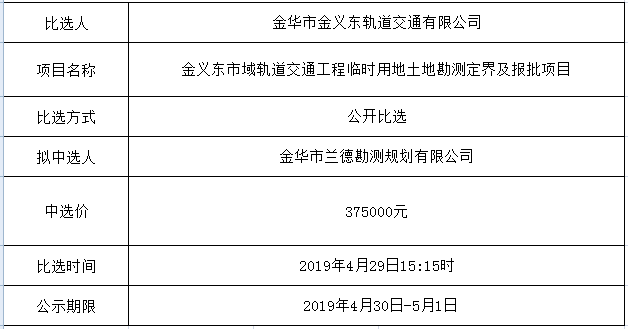 金華市金義東軌道交通有限公司運(yùn)營2026-2027年度活動(dòng)實(shí)施服務(wù)機(jī)構(gòu)框架協(xié)議項(xiàng)目中標(biāo)候選人公示