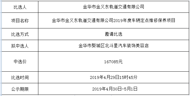 金華市金義東軌道交通有限公司運營2026-2027年度活動實施服務(wù)機(jī)構(gòu)框架協(xié)議項目中標(biāo)候選人公示
