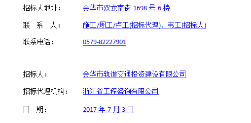 5、潛在投標(biāo)人對(duì)招標(biāo)文件有疑問(wèn)的,通過(guò)浙江省公共資資源交易中心電子招投標(biāo)交易平臺(tái)提交,提交疑問(wèn)截止日為2017年7月13日16:30。招標(biāo)人將于2017年7月25日前在網(wǎng)上發(fā)布補(bǔ)充(答疑、澄清)文件。潛在投標(biāo)人應(yīng)自行關(guān)注網(wǎng)站公告,招標(biāo)人不再一一通知。投標(biāo)人因自身貽誤行為導(dǎo)致投標(biāo)失敗的,責(zé)任自負(fù)。