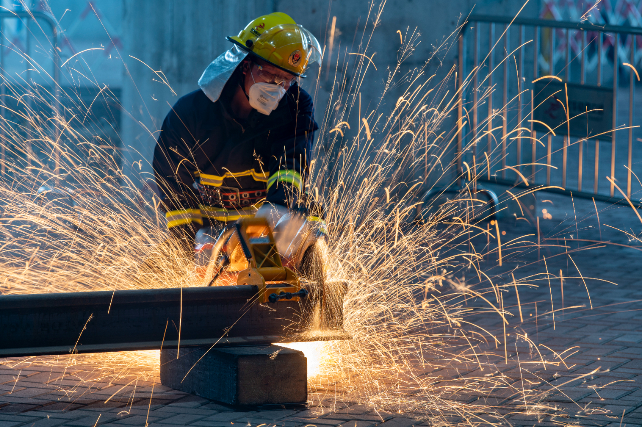 6月11日,在浙江省金華市金義東市域軌道交通工程塘雅車輛段,青年職工選手在參加軌道交通鋼軌切割項(xiàng)目技能比武。