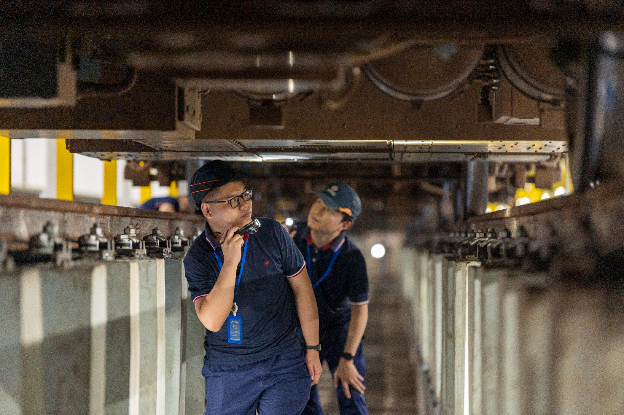 6月11日,在浙江省金華市金義東市域軌道交通工程塘雅車輛段,青年職工選手在參加軌道交通車廂安檢項(xiàng)目技能比武。當(dāng)日,浙江省金華市舉行第三屆軌道交通青年職工技能比武大賽。從全市1000多名專業(yè)人員中選撥出來(lái)的282名青年職工選手參加應(yīng)急處置、服務(wù)禮儀、手動(dòng)駕駛、行車故障處置等13個(gè)項(xiàng)目的角逐,全面提升城市軌道交通從業(yè)人員的業(yè)務(wù)技能水平,推動(dòng)技能人才隊(duì)伍高質(zhì)量發(fā)展。
