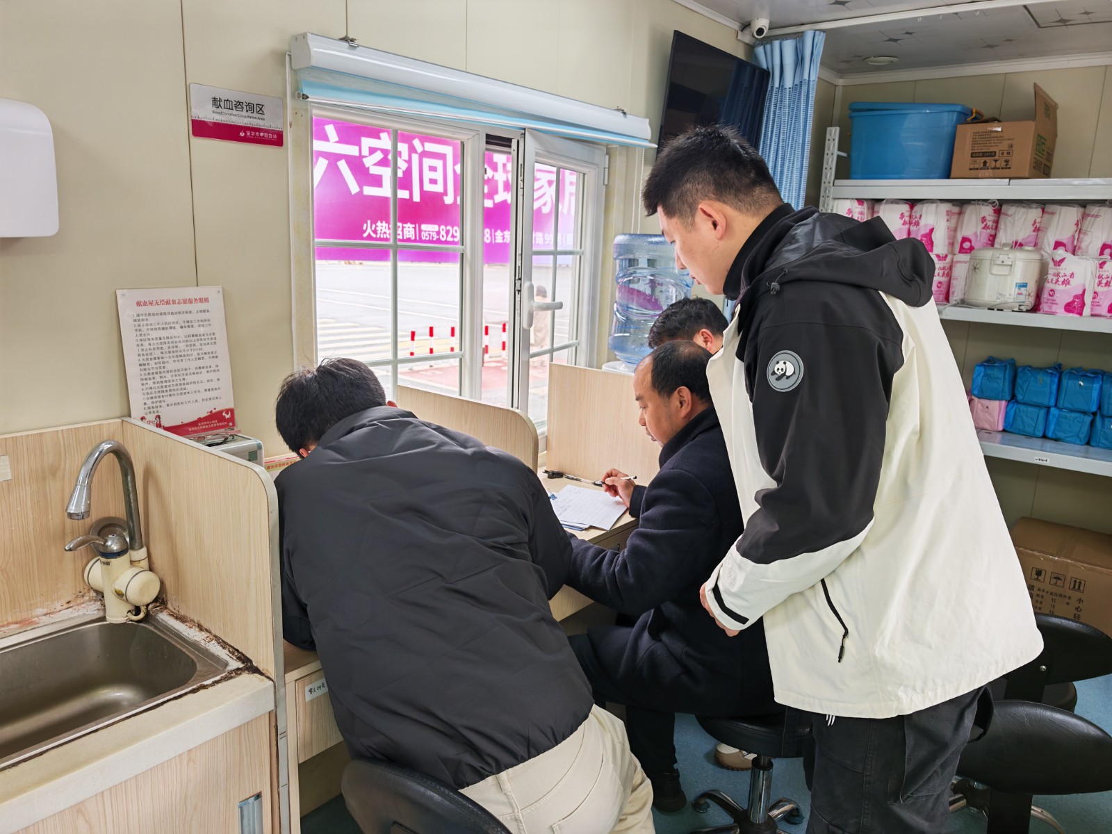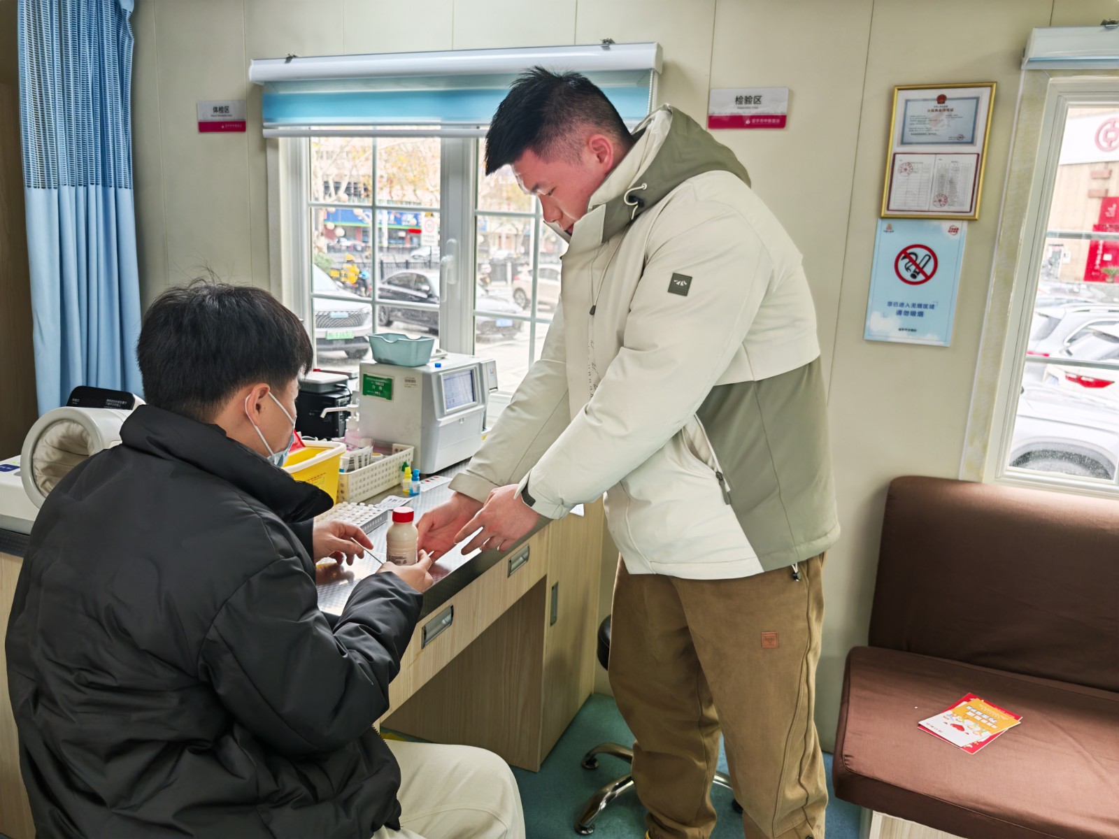 “獻完血后盡量不要劇烈運動,不要提重物,注意休息,多飲水,保持飲食清淡。”活動現(xiàn)場,志愿隊員們兵分兩路開展獻血志愿服務。一方面向周邊市民發(fā)放宣傳手冊,以現(xiàn)場咨詢、答疑解惑的方式向市民們普及獻血知識;另一方面嚴格按照采血工作要求,為前來獻血的愛心市民進行填表登記、測量血壓等程序,并詳細詢問獻血者近期身體狀況,為其講解獻血后的注意事項。